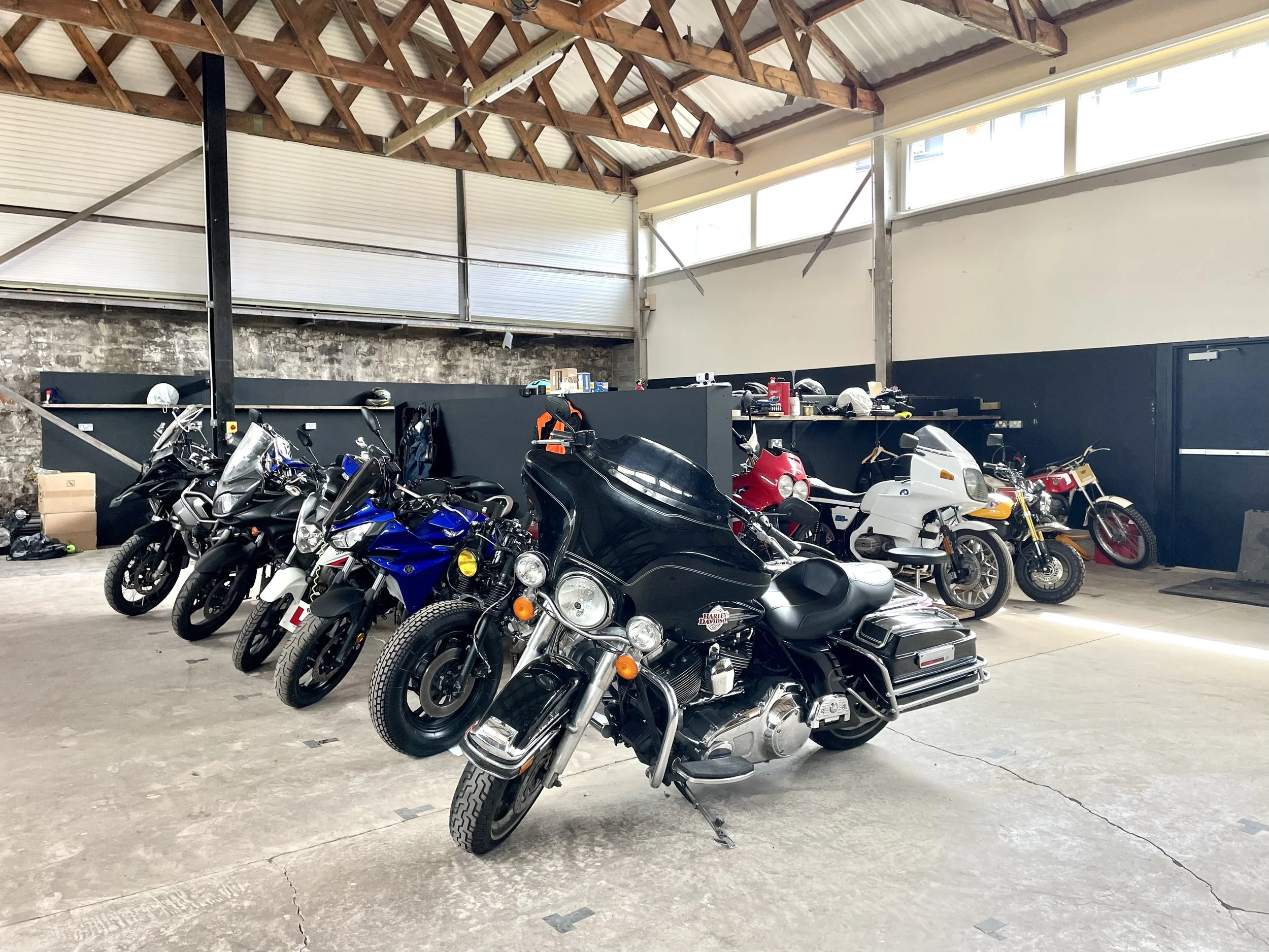 Our spots are spacious enough to fit a large adventure bike with luggage, and each spot comes with a shelf and dedicated hanging space for your riding gear. If you’ve got extra kit to store, we also have lockers available.